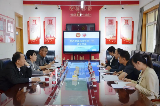 4月25日下午,邢台市中级人民法院副书记、副院长李智华一行到访我校太阳成集团tyc234cc,双方共商法学教育与司法实践深度融合具体方案。参加本次交流会的有邢台市中级人民法院研究室主任李利克、教育培训处处长刘霞、研究室副主任赵亚男,我院党委书记黄华、副院长张亮、副教授陈云朝、赵东。张亮主持会议。