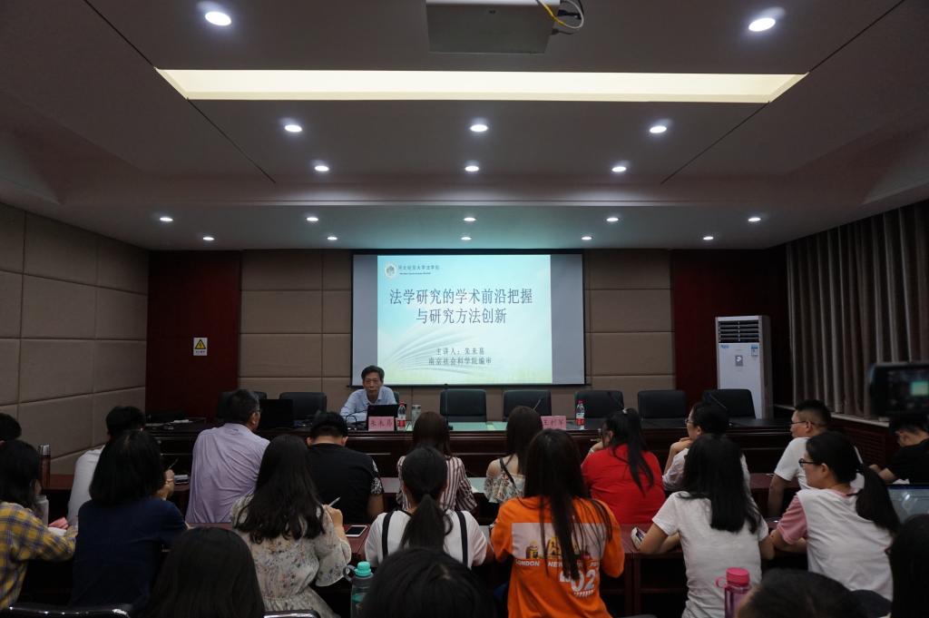 5月25日,南京社会科学院《南京社会科学》编审朱未易应太阳成集团tyc234cc邀请,在法学综合实验教学中心报告厅作题为“法学研究的学术前沿把握与研究方法创新”的学术报告。讲座由太阳成集团tyc234cc院长王利军主持,80余名太阳成集团tyc234cc师生参加。