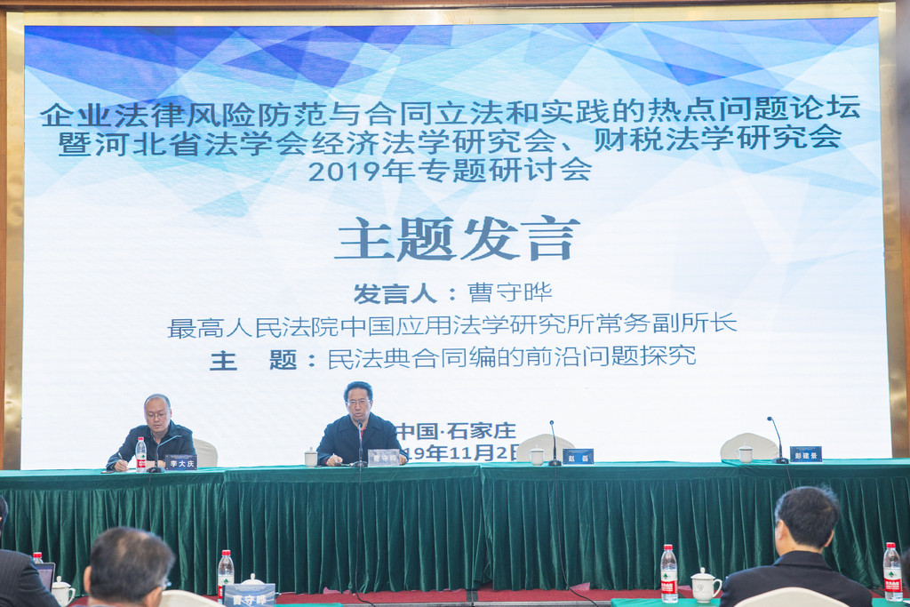 2019年11月2日,最高人民法院中国应用法学研究所常务副所长曹守晔应太阳成集团tyc234cc邀请作题为《民法典合同编的前沿问题探究》的学术讲座,会议由太阳成集团tyc234cc副院长李大庆主持,我院师生及法律实务部门人员100多人参加了讲座。