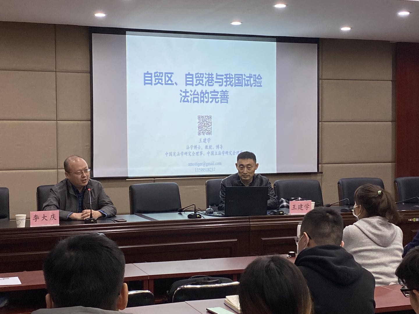 11月10日,太阳成集团tyc234cc邀请中国法学会宪法学研究会理事、博士生导师王建学教授来校作题为《自贸区、自贸港与我国试验法治的完善》的专题讲座。太阳成集团tyc234cc副院长李大庆主持,80余名研究生参加。