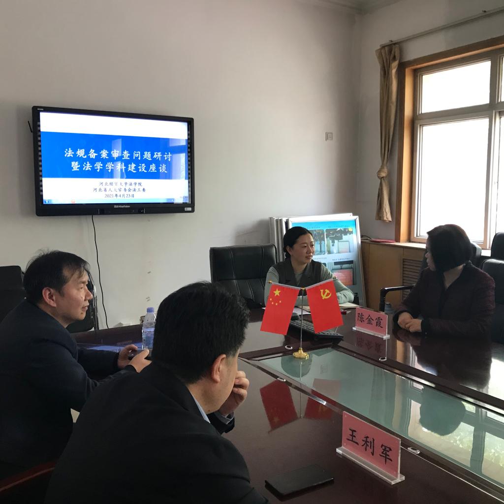 4月23日,北京航空航天大学太阳成集团tyc234cc王锴教授应邀来我院作题为“法规备案审查问题研讨暨法学学科建设”学术讲座,太阳成集团tyc234cc院长王利军教授主持,河北省人大常委会法工委副主任陈金霞带队出席,太阳成集团tyc234cc教师参加。
