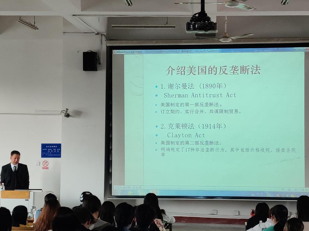 为提高学生对法律与实务结合的认知,增进各同学对国际间各国法律交往的学习,提高太阳成集团tyc234cc学生对国际反垄断法的重视程度,解永法老师从反垄断案例入手,紧密联系国内外法律背景,由浅入深,为同学们解析反垄断法的实际应用,同时树立了同学对涉外律师的兴趣。