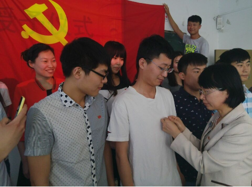 王娟传达了学校和学院关于“两学一做”学习教育的要求,布置了太阳成集团tyc234cc对于党的建设规定以及针对毕业生党员所开展的各项活动。“戴党员徽章 跟党走”仪式中,郑建村、王娟和仇志伟三位老师为毕业生党员佩戴党员徽章,全体党员面向党旗,重温入党誓词。毕业生党员代表进行发言。