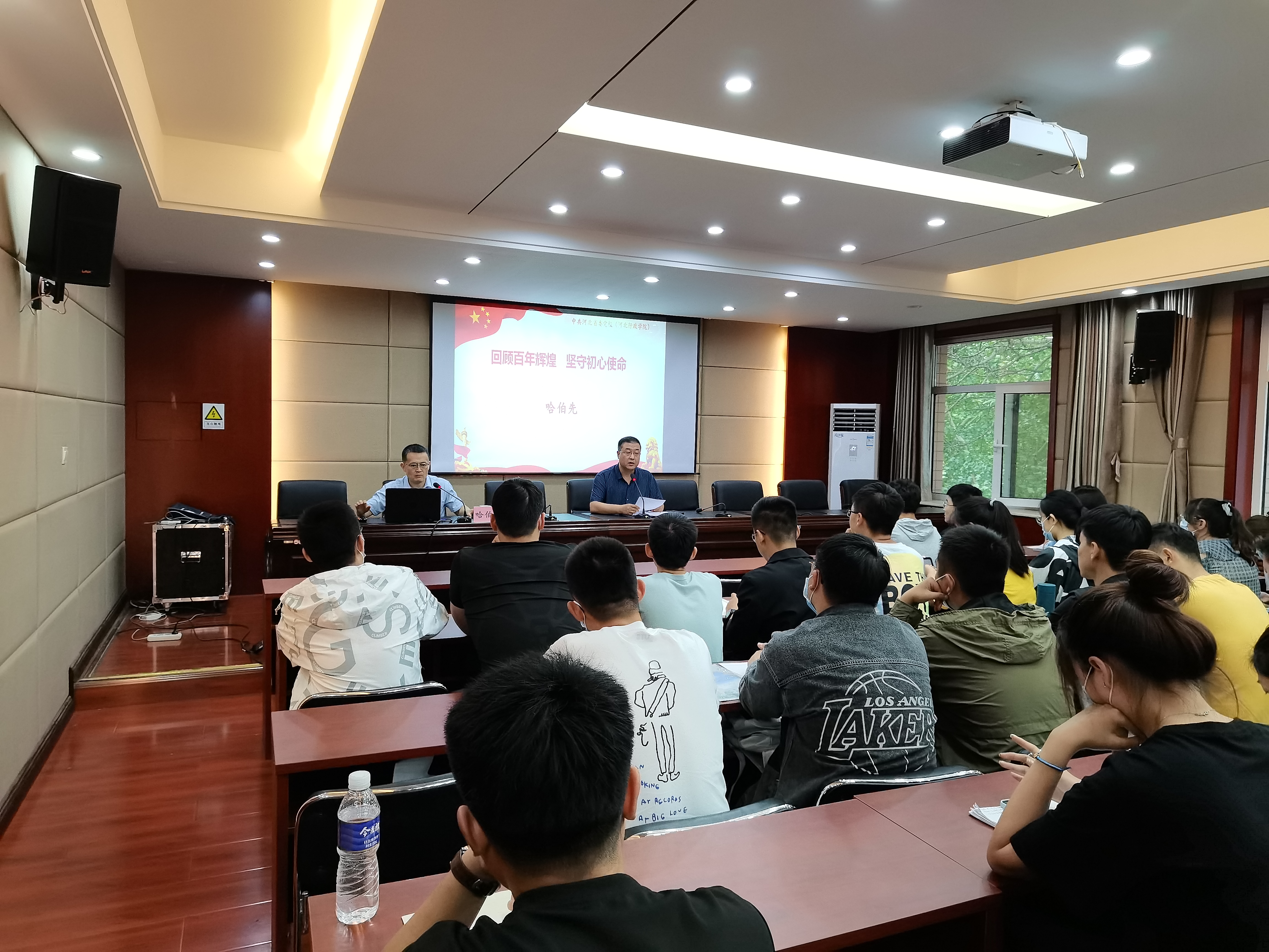 2021年9月23日下午,太阳成集团tyc234cc邀请河北省委党校政治和法律教研部主任哈伯先在模拟法庭报告厅作了“回顾百年辉煌 坚守初心使命”的专题讲座。太阳成集团tyc234cc80余名研究生、本科生现场聆听,讲座由太阳成集团tyc234cc党委书记王继伟主持。