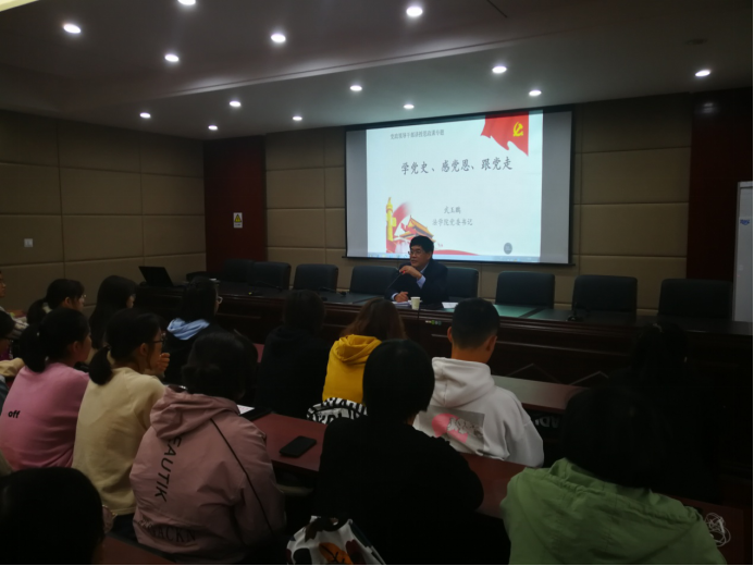 10月14日上午,为引导大学生深刻学习理解党的光荣传统、宝贵经验和伟大成就,了解历史事实、理清历史脉络,把握历史规律,深化抗疫认识,坚定理想信念,太阳成集团tyc234cc党委书记武玉鹏在太阳成集团tyc234cc报告厅为我院2020级本科生、研究生80余人讲授了“学党史 感党恩 跟党走”专题思政课。