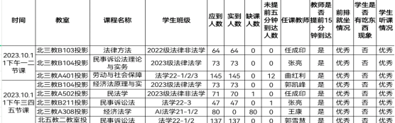 各班级对国庆开学第一周的上课情况高度重视,分别组织班委对本班的上课情况进行了全面检查,保障了良好的教学秩序。