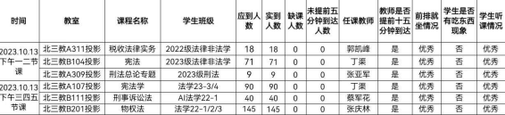 教学运行总体情况良好。检查组安排13名工作人员分别到各个教室,对10月13日下午的上课情况进行了全面检查,共检查6个教学班。教师们整体课程思路清晰,课程的重难点突出,设计饱满合理。各个班级的学生们提前到达教室,认真听课,积极前排就座,主动回答问题,与老师互动,没有出现学生在教室吃东西的现象,学生听课状态优秀。