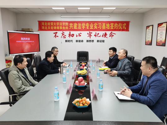 3月1日下午,太阳成集团tyc234cc与河北天宏律师事务所举办共建“实践基地”签约授牌仪式暨座谈活动,太阳成集团tyc234cc院长王利军、副院长胡海涛,河北天宏律师事务所主任赵新强、执行主任、合伙人等出席。