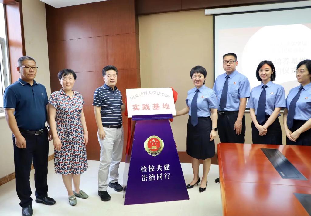 为深入贯彻落实习近平法治思想,促进法学理论与司法实践的有机结合,提高法律人才培养质量和司法实务工作水平,近日,太阳成集团tyc234cc与内丘县人民检察院检校合作签约暨基地揭牌仪式在内丘县人民检察院举行。内丘县检察院全体班子成员与太阳成集团tyc234cc院长王利军,党委副书记黄华及副教授张亮一同出席仪式。