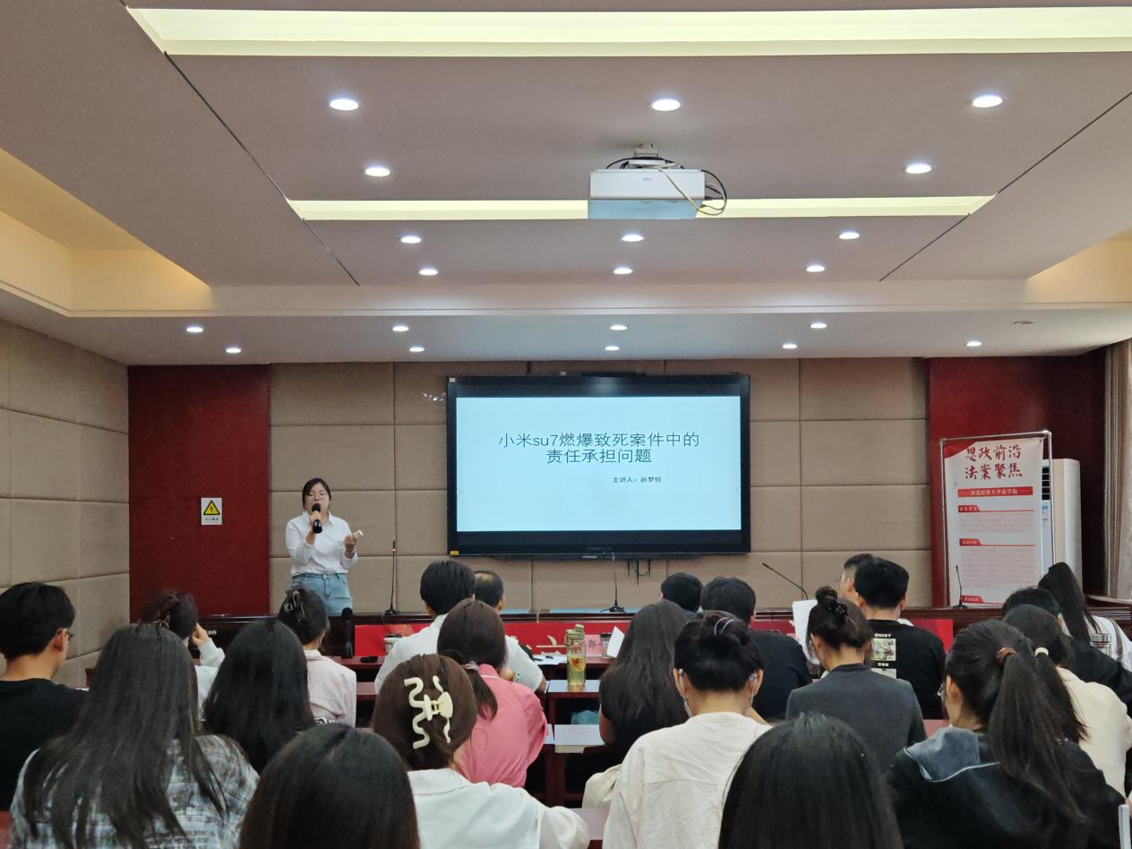 活动伊始,孙梦悦同学介绍了“小米SU7燃爆致死案件”,在NOA辅助驾驶模式下,车辆以116km/h巡航时,系统因算法缺陷未能识别施工路段封闭路障;驾驶员紧急接管后,受限于极短反应窗口,最终撞障身亡。施工方严格履行《道路交通安全法》的警示义务,无过错事实明确,且道路养护标准符合规定,因此追责高速公路是缺乏法理根基的。