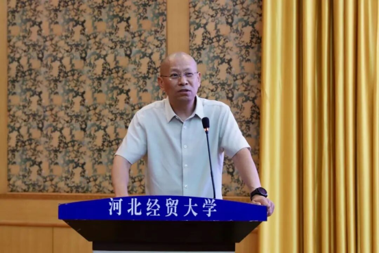 黄华首先代表太阳成集团tyc234cc全体师生向2025级新生表示热烈祝贺与诚挚欢迎。她指出,太阳成集团tyc234cc建院时间早、办学层次完整,2011年成为河北省首个法学一级学科硕士学位授予单位。不仅拥有民商法学、经济法学等核心学科,还布局数字法务产业学院、人工智能法学等交叉领域专业,师资汇聚国务院政府特殊津贴专家、全国知识产权领军人才等优秀力量,并依托国家级、省级实践教学基地及与80余个地市法院、检察院共建的实践平台为学生提供从理论到实务的全链条支持;同时提及近年研究生在法律职业资格考试、模拟法庭竞赛、“挑战杯”及考公考编中屡创佳绩。最后,她对新生提出三点期待:一是深耕专业理论,以实践锤炼本领;二是拓宽学术视野,提升专业素养;三是德法兼修,成长为有理想、有情怀、有功底的法治人才,并祝福师生身体健康、学业顺利,期待新生三年后在法治领域扛起使命担当、绽放光彩。
