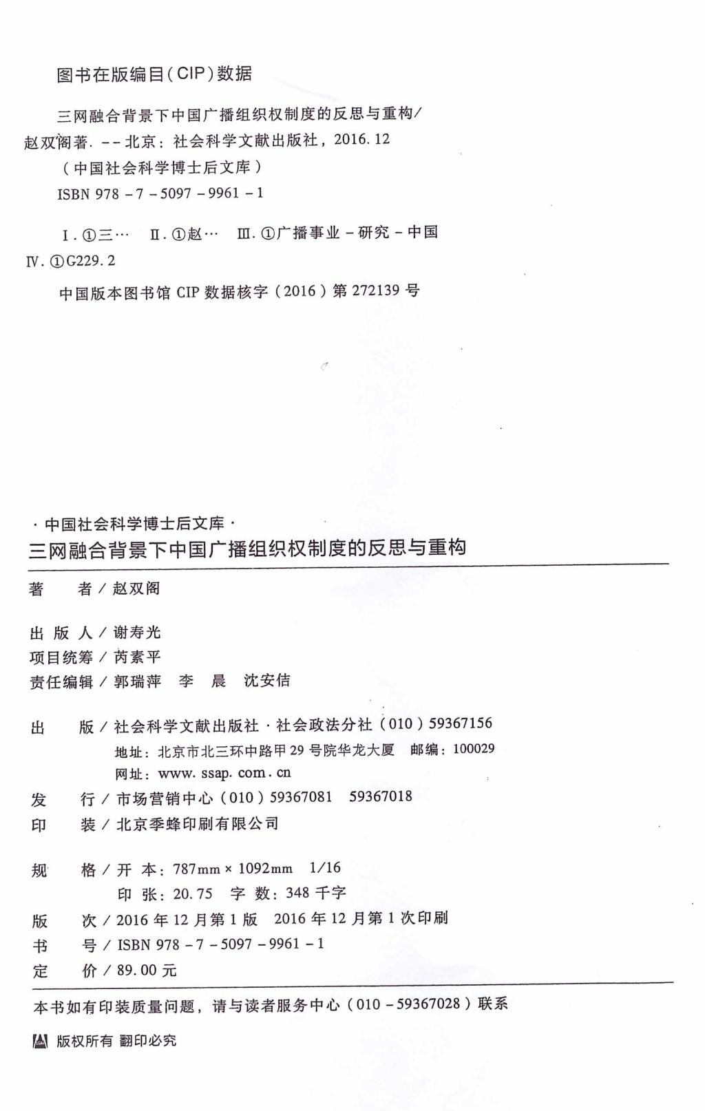 第六章 三网融合背景下中国广播组织权制度评析与改革思路/228