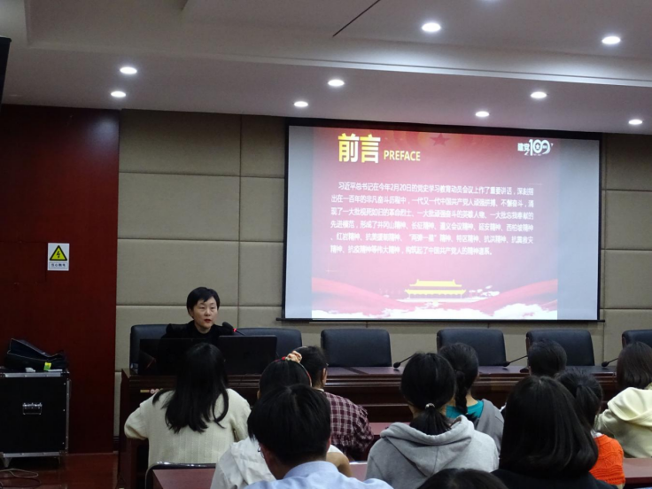 宣讲报告以“中国共产党人的精神谱系”为主题,依托党建引领,力使太阳成集团tyc234cc新生的中坚力量党史学习教育更全面、思想领悟更深刻、工作落实更扎实、新局开辟更宽阔。