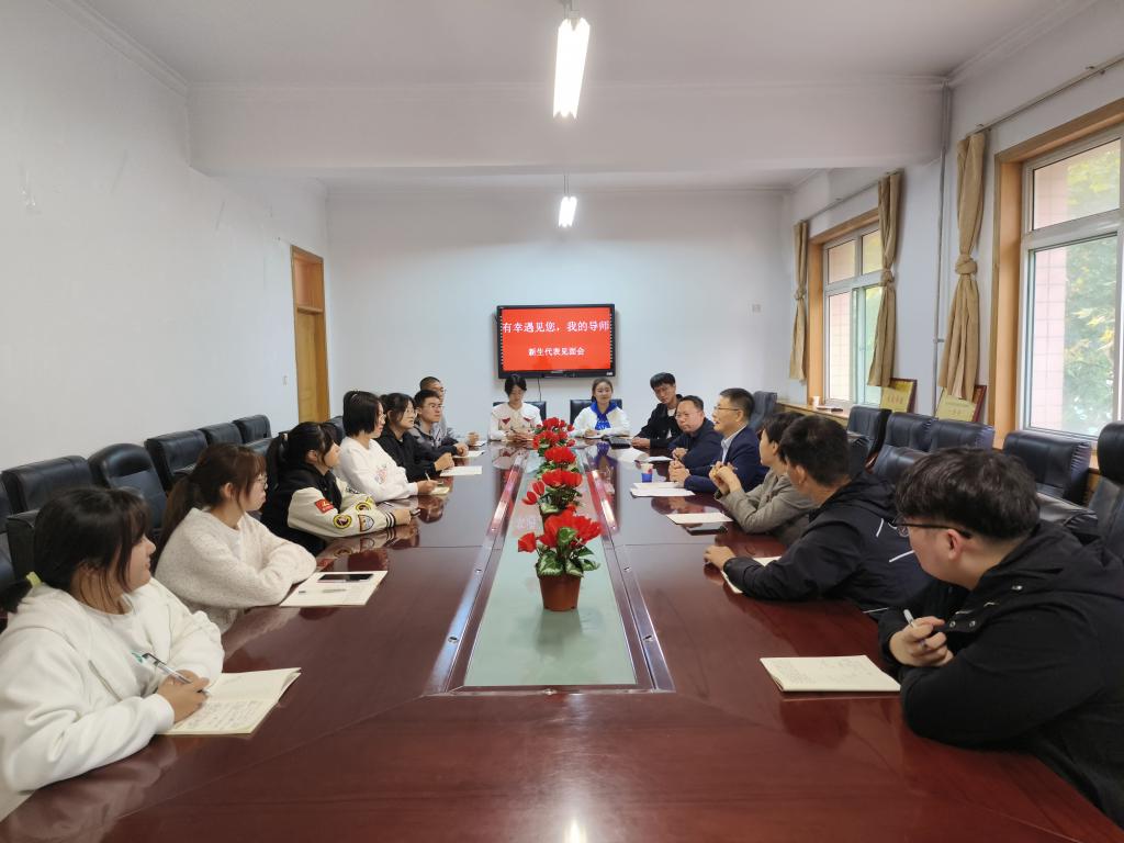本次见面会以“有幸遇见您,我的导师”为主题,旨在增进班级导师与新生之间了解,拉近班级导师与新生之间关系。高晓峰首先作了自我介绍,并从自己三十多年从教经历出发,讲述自己与学生工作的不解之缘。他鼓励新生要珍惜大学生活,做到“比学赶帮超”, 树立伟大人生理想信念,在实现中华民族伟大复兴征程中贡献自己的青春力量。