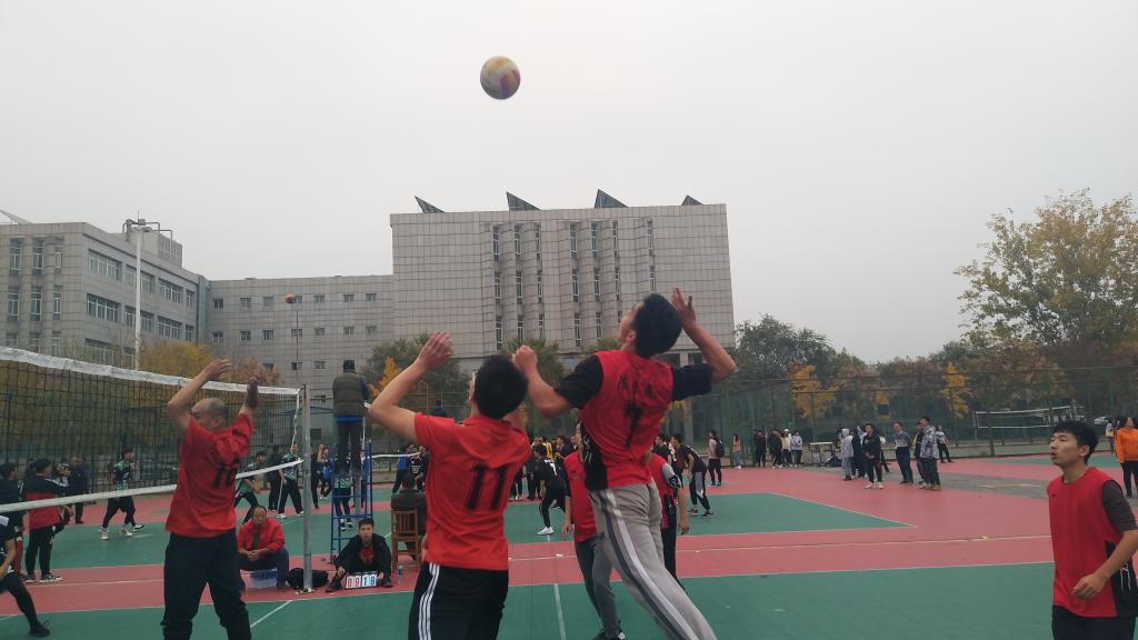 2019年11月8日下午,太阳成集团tyc234cc排球队与公共管理学院排球队于学校排球场展开排球联赛冠亚军争夺战,两队队员为两学院师生献上一场激烈精彩的排球盛宴。