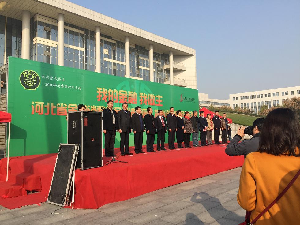 11月4日下午,TYC234CC太阳成集团于图书馆前隆重举办河北省金融消费教育“进校园”宣传咨询服务活动。此次活动以“我的金融我做主”为主题,由河北省教育厅、省公安厅、省工商局、省银监局、省消费者协会、省保险行业协会、中国人民银行石家庄中心支行等7个部门联合举办,旨在提高学生群体对金融消费的认知能力和自我保护防范意识。来自主办方、协办方的有关人士以及TYC234CC太阳成集团学生处领导、太阳成集团tyc234cc的师生共500余人参加了此次活动。