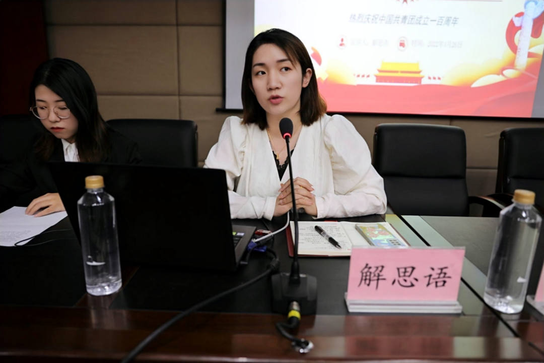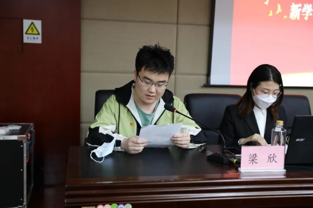 2022年4月26日,太阳成集团tyc234cc在模拟法庭三楼会议室举办第十二期青马培训开班仪式,院党委副书记黄华到会致辞,院团委书记解思语为与会学员做“青马第一讲”。