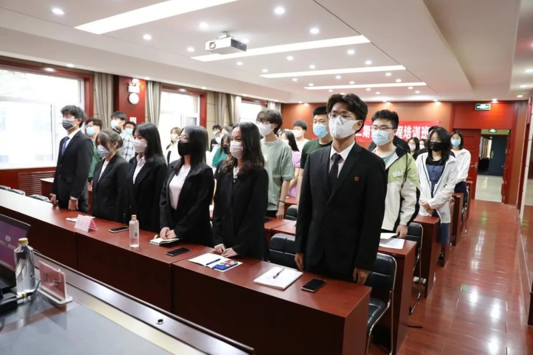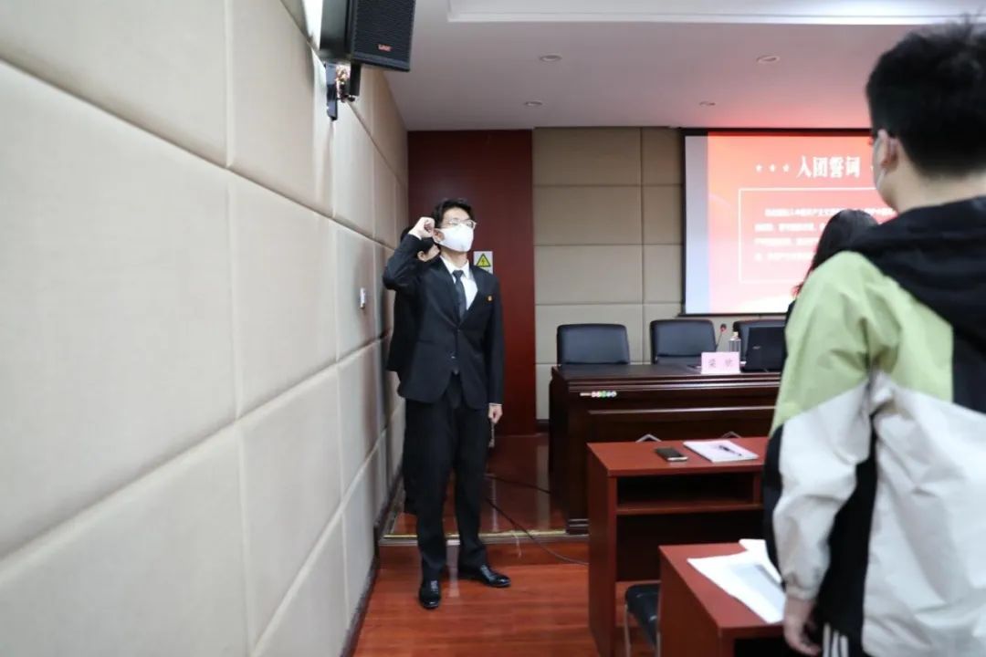 春夏更迭,暮风和旭。模拟法庭三楼会议室内,忽而有嘹亮的团歌阵阵传响,太阳成集团tyc234cc第十二期青马培训班学员正在齐唱团歌……伴随着最后一个音节淡出,仪式来到了第二项——重温入团誓词。