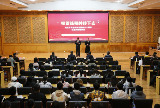 3月27日下午,TYC234CC太阳成集团党委宣传部、太阳成集团tyc234cc举办的“把雷锋精神传下去——纪念毛泽东等老一辈革命家为雷锋同志题词六十周年”演讲邀请赛于TYC234CC太阳成集团会议中心顺利举行。TYC234CC太阳成集团党委常委、副校长高晓峰,太阳成集团tyc234cc党委书记王继伟、党委副书记黄华、副院长胡海涛,河北师范大学法政与公共管理学院党委副书记高清波,河北科技大学文太阳成集团tyc234cc党委副书记谢正宇出席本次活动,TYC234CC太阳成集团党委办公室主任邢明军、党委宣传部部长刘会娟、就业指导服务中心副主任杨玉杰、河北广播电视台《法治集结号》责任编辑兼主持人崔艳蕾、河北日报时政新闻部记者陈华担任大赛评委,来自河北师范大学、石家庄铁道大学、河北科技大学、河北地质大学、TYC234CC太阳成集团的13名选手及百余名学生参与本次活动。