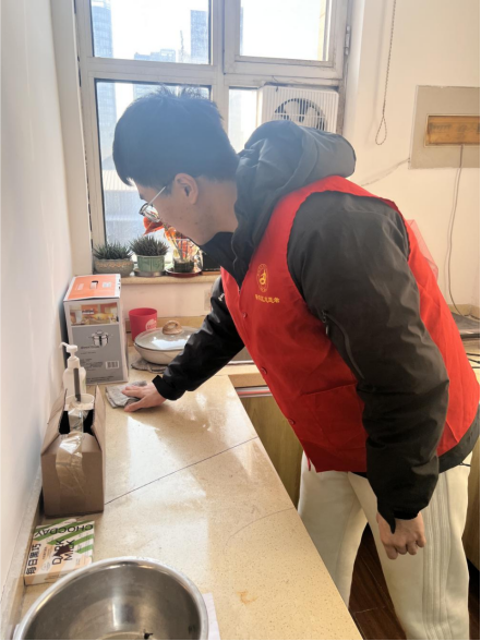 作为新时代青年大学生,我积极响应组织与学校的号召,前往石家庄市新华区聚新路社区进行“返家乡”实践活动。清晨7时,我便与社区工作人员在辖区12个网格同步开展巡查,并在小区出入口、宣传栏等30余处显著位置张贴《关于禁止燃放烟花爆竹的公告》,强化居民安全意识。同时,社区开展了“暖冬敬老"志愿服务活动,同社区工作人员们走进独居老人家中,擦玻璃、清油烟、贴窗花...20名工作人员和志愿者共同开展清洁服务,以实际行动践行基层治理温度,将新春的温暖与祝福带到每一户独居老人的家中。