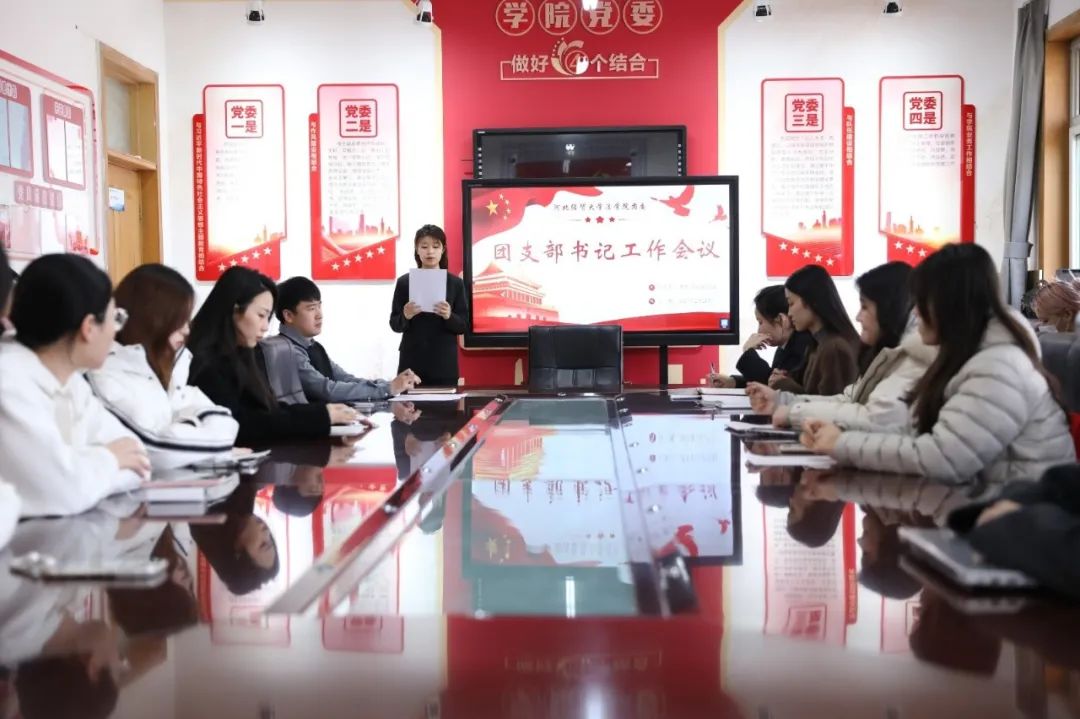 会议伊始,梁老师借上学期太阳成集团tyc234cc团委荣获“五四红旗团支部”荣誉称号一事,对各团支部书记的工作给予了充分的肯定和表扬。梁老师表示,在过去的一个学期里,太阳成集团tyc234cc团委赓续奋斗基因,在团结奋进的基础上稳定前行,太阳成集团tyc234cc团委的进步,离不开各团支部书记的努力,希望各位团支书们能够在本学期再接再厉,取得更多成就。