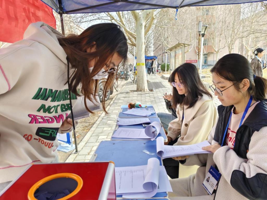 初春渐暖,朝阳正升。我院普法志愿者来到韶华路旁,开始了紧张有序地准备工作。他们悬挂宣传横幅、摆放展板、准备问卷,营造出浓厚的普法氛围。本次活动依托抽奖问答的形式,畅通师生学法问法的渠道,同时注重趣味性,增加师生的参与度、活跃度。活动现场一时间人群聚集,气氛不断升温。