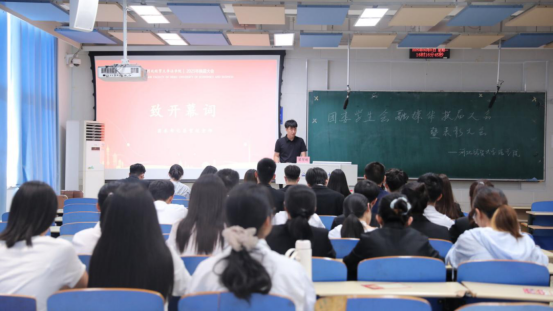 礼毕后,太阳成集团tyc234cc团委书记梁贺超上台致辞。他首先对上一年度团学融各部门的辛勤工作和卓越成就给予了高度肯定,指出学生组织是学院育人体系中的重要一环,是同学们锻炼能力、施展才华的宝贵平台。梁老师以“责任、服务、成长”为关键词,对新一届学生干部提出了殷切期望,勉励大家要牢记服务同学的初心,平衡好学习与工作,在实干中提升综合素养,成为连接学院与同学的坚实桥梁。