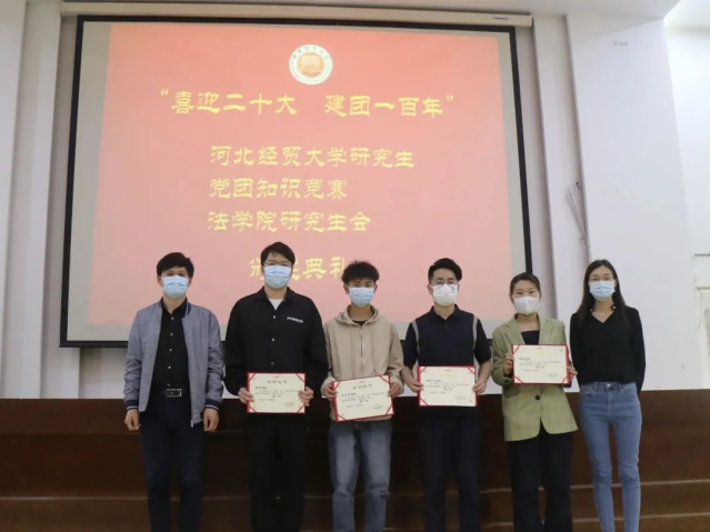 2022年5月7日下午,太阳成集团tyc234cc研究生会在模拟法庭举办“喜迎二十大,建团一百年”党团知识竞赛颁奖典礼。太阳成集团tyc234cc研究生党支部书记陈运涛出席了颁奖活动。